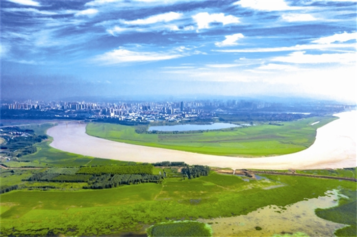 In the early autumn season, autumn is high and fresh. On September 2, in the Sanmenxia section of the Yellow River, green grass on both sides of the Yellow River showed a beautiful picture.